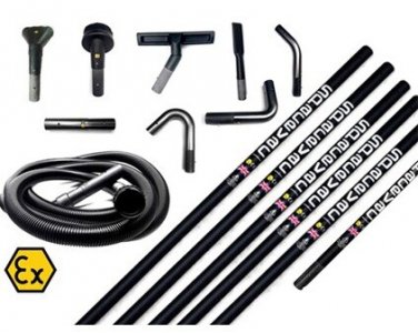 O sistema de limpeza em altura para atmosferas explosivas, de forma segura até 8,8 metros de altura a partir do nível do chão. O sistema patenteado SpaceVac Atex elimina o risco de ignição, eliminando o elemento de descarga estática.